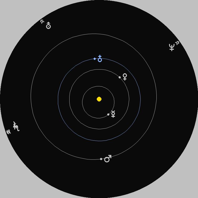 | f Merkur g Venus l Erde h Mars j Jupiter S Saturn A Uranus G Neptun |