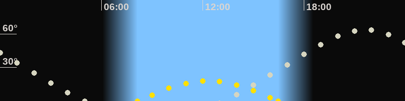 | Höchster Sonnenstand (Kulmination) | 12:19 Uhr (h = 17.9°) |