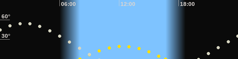 | Höchster Sonnenstand (Kulmination) | 12:21 Uhr (h = 19.3°) |