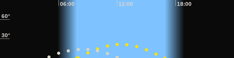 | Höchster Sonnenstand (Kulmination) | 12:23 Uhr (h = 21.3°) |
