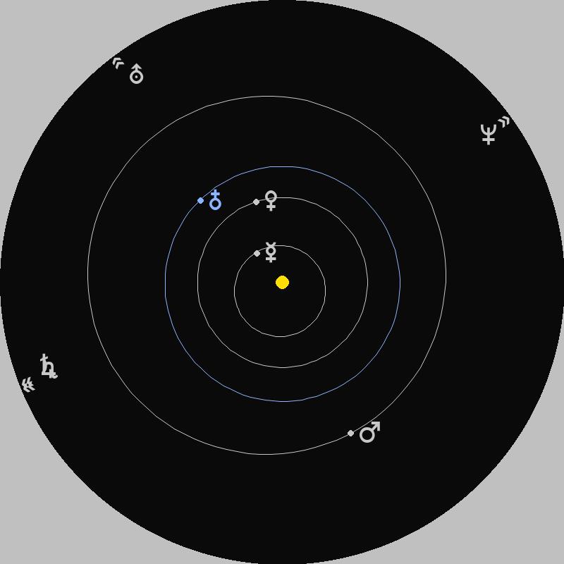 | f Merkur g Venus l Erde h Mars j Jupiter S Saturn A Uranus G Neptun |