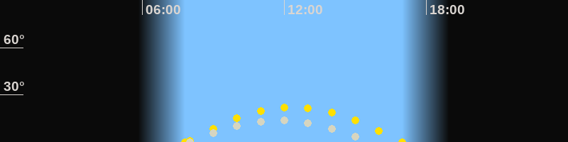 | Höchster Sonnenstand (Kulmination) | 12:23 Uhr (h = 22.1°) |