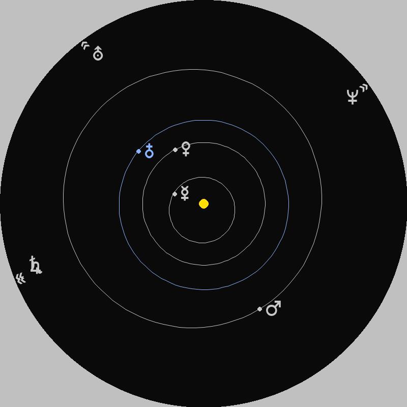 | f Merkur g Venus l Erde h Mars j Jupiter S Saturn A Uranus G Neptun |