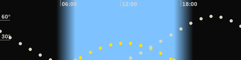 | Sonnenaufgang | 07:30 Uhr im Osten (αAz = 111.5°) |