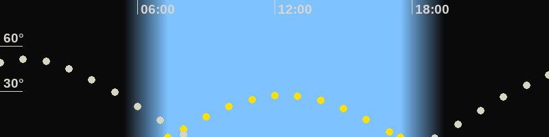 | Höchster Sonnenstand (Kulmination) | 12:24 Uhr (h = 27.5°) |