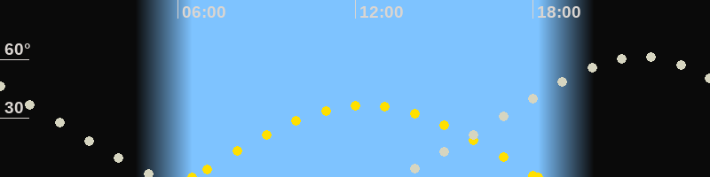 Höchster Sonnenstand (Kulmination)12:19 Uhr (h = 36.6°)