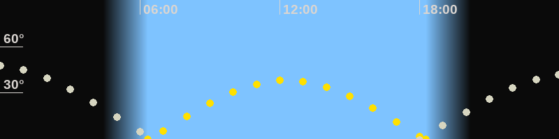 Höchster Sonnenstand (Kulmination)12:18 Uhr (h = 38.2°)