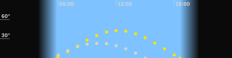 Höchster Sonnenstand (Kulmination)12:14 Uhr (h = 42.9°)