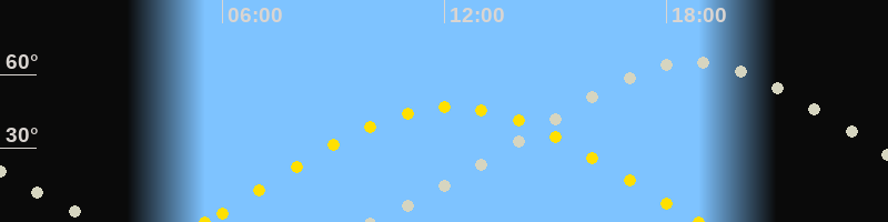 | Höchster Stand (Kulmination) | 18:43 Uhr (h=65.2°) |