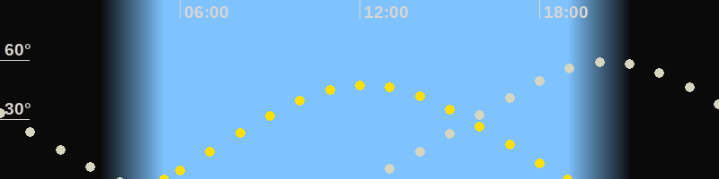 | Sonnenuntergang | 18:55 Uhr im Westen (αAz = 283.9°) |