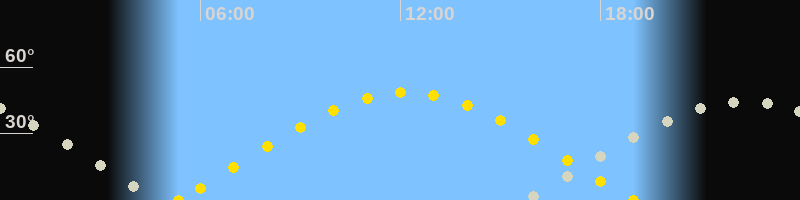 Höchster Sonnenstand (Kulmination)12:10 Uhr (h = 48.6°)