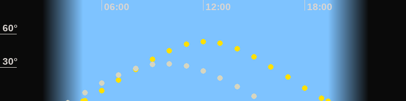 | Höchster Sonnenstand (Kulmination) | 12:07 Uhr (h = 53.3°) |