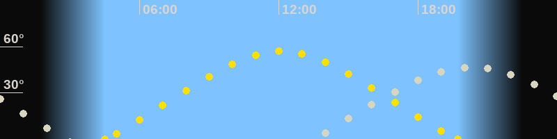Höchster Sonnenstand (Kulmination)12:06 Uhr (h = 57.1°)