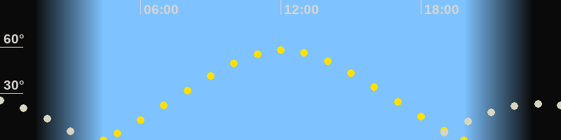 Höchster Sonnenstand (Kulmination)12:06 Uhr (h = 58.1°)