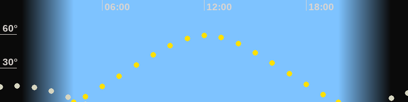 | Höchster Sonnenstand (Kulmination) | 12:06 Uhr (h = 58.8°) |