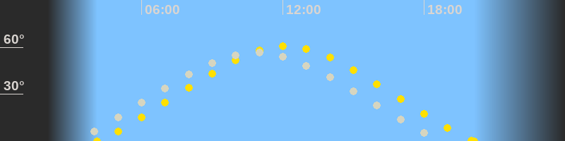 | Höchster Sonnenstand (Kulmination) | 12:07 Uhr (h = 60.8°) |