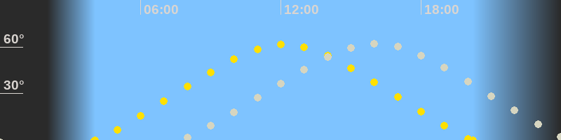 | Höchster Sonnenstand (Kulmination) | 12:08 Uhr (h = 61.7°) |