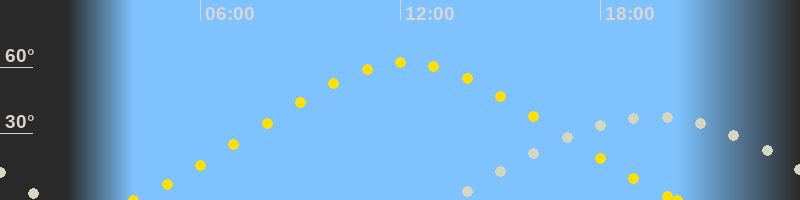 Höchster Sonnenstand (Kulmination)12:09 Uhr (h = 62.2°)
