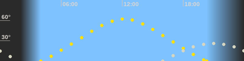 | Höchster Sonnenstand (Kulmination) | 12:09 Uhr (h = 62.3°) |