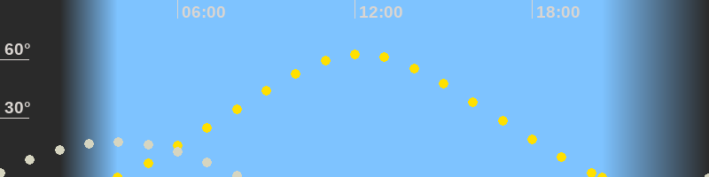 | Höchster Sonnenstand (Kulmination) | 12:11 Uhr (h = 62.7°) |