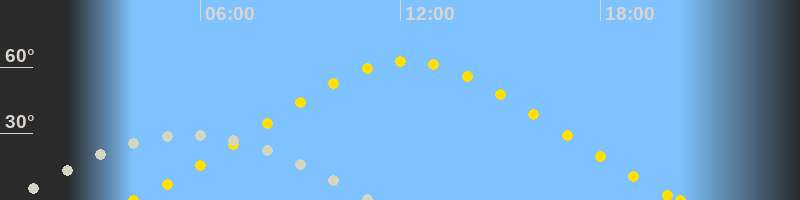 Höchster Sonnenstand (Kulmination)12:11 Uhr (h = 62.7°)