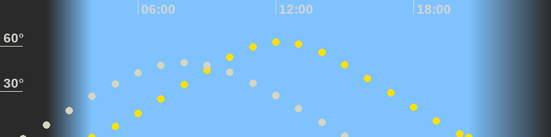 Höchster Sonnenstand (Kulmination)12:12 Uhr (h = 62.7°)