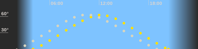 Höchster Stand (Kulmination)10:25 Uhr (h=63.2°)