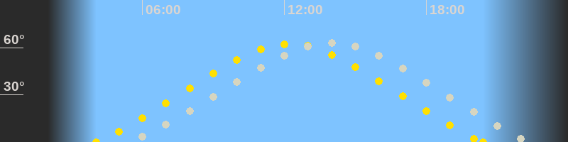 | Höchster Sonnenstand (Kulmination) | 12:14 Uhr (h = 62.4°) |