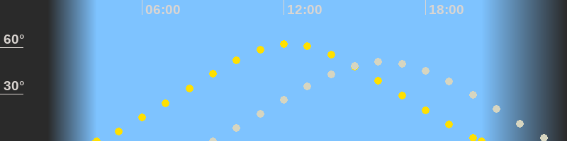 | Höchster Sonnenstand (Kulmination) | 12:14 Uhr (h = 62.2°) |