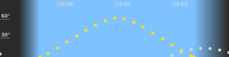 | Höchster Sonnenstand (Kulmination) | 12:15 Uhr (h = 61.4°) |