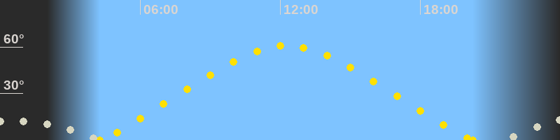 | Höchster Sonnenstand (Kulmination) | 12:16 Uhr (h = 60.8°) |
