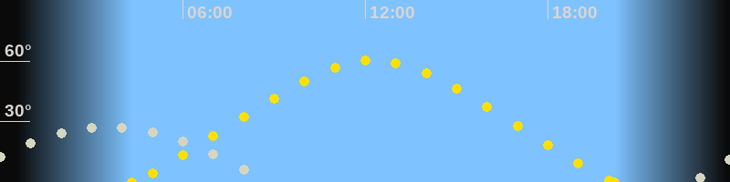 | Höchster Sonnenstand (Kulmination) | 12:16 Uhr (h = 60.3°) |