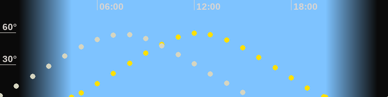 | Höchster Sonnenstand (Kulmination) | 12:16 Uhr (h = 59.4°) |