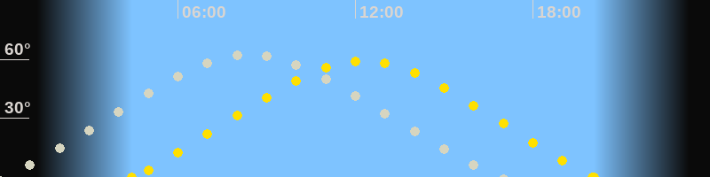 Höchster Sonnenstand (Kulmination)12:16 Uhr (h = 59.2°)