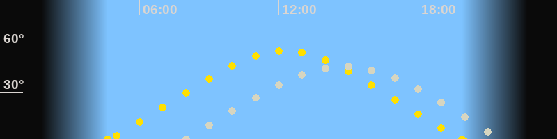 | Höchster Sonnenstand (Kulmination) | 12:16 Uhr (h = 57.4°) |