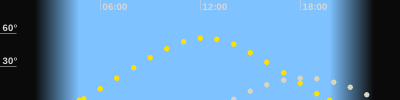 | Höchster Sonnenstand (Kulmination) | 12:16 Uhr (h = 56°) |
