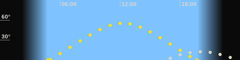 | Höchster Sonnenstand (Kulmination) | 12:16 Uhr (h = 55.5°) |