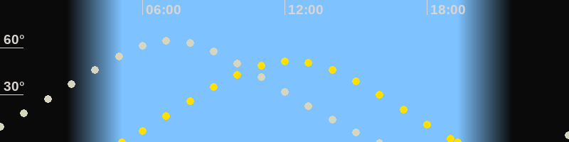 Höchster Stand (Kulmination)07:10 Uhr (h=64.6°)