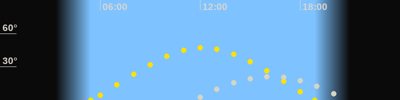 | Sonnenaufgang | 05:26 Uhr im Osten (αAz = 76.4°) |