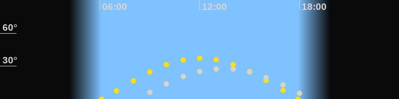 Höchster Stand (Kulmination)13:30 Uhr (h=28.1°)