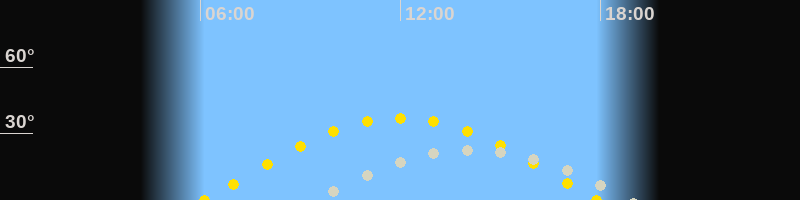 | Höchster Sonnenstand (Kulmination) | 12:00 Uhr (h = 37°) |
