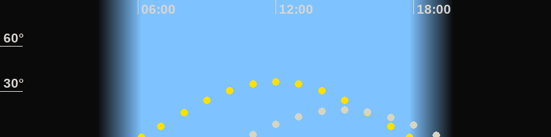 | Höchster Sonnenstand (Kulmination) | 12:00 Uhr (h = 36.6°) |