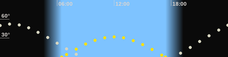 | Höchster Sonnenstand (Kulmination) | 11:56 Uhr (h = 32°) |