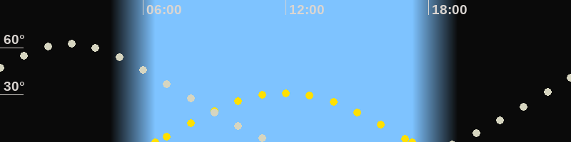 | Höchster Sonnenstand (Kulmination) | 11:56 Uhr (h = 31.2°) |