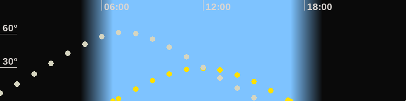 | Höchster Stand (Kulmination) | 07:20 Uhr (h=61.5°) |