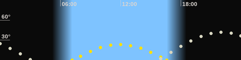 | Höchster Sonnenstand (Kulmination) | 11:53 Uhr (h = 23.4°) |