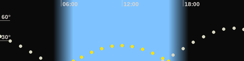 Höchster Sonnenstand (Kulmination)11:53 Uhr (h = 23.1°)