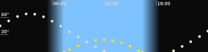 | Höchster Sonnenstand (Kulmination) | 11:54 Uhr (h = 21.4°) |