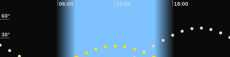 | Höchster Sonnenstand (Kulmination) | 12:00 Uhr (h = 17.1°) |