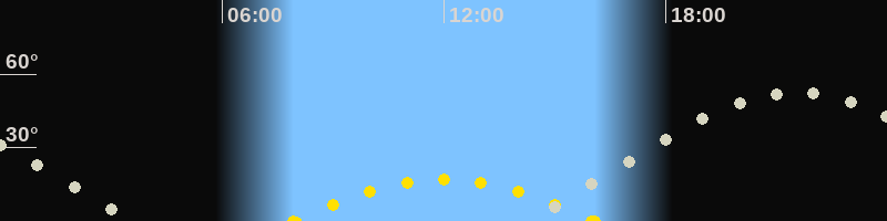 | Höchster Sonnenstand (Kulmination) | 12:00 Uhr (h = 17°) |